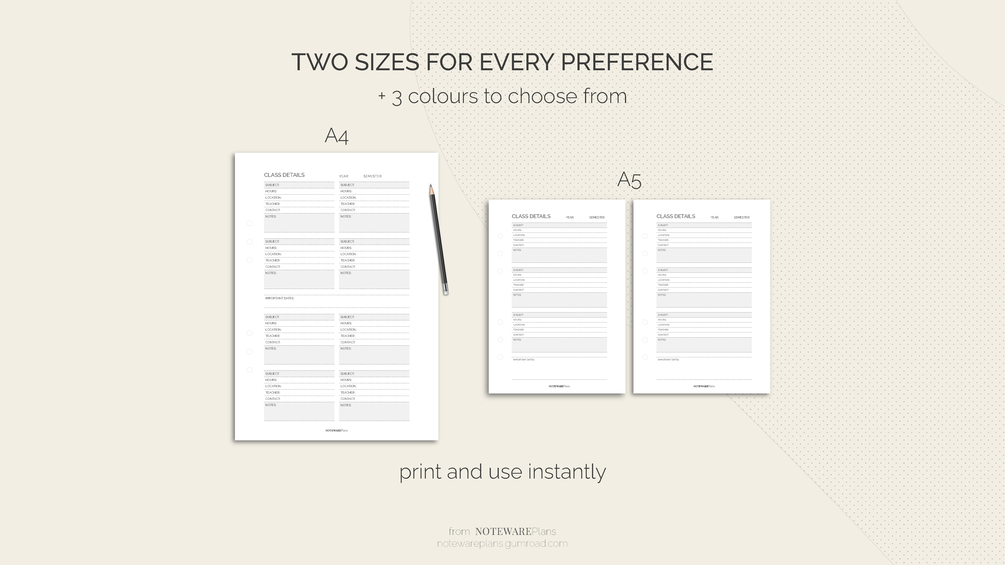 Class Details Printable, Class Planner, Printable Planner, Instant Download, A4/A5